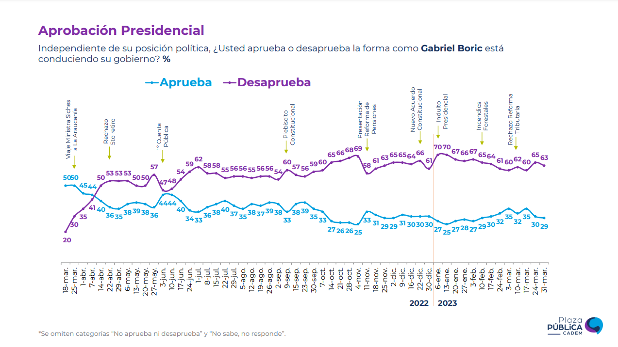 Encuesta Cadem: aprobación de Presidente Boric cae a 29%