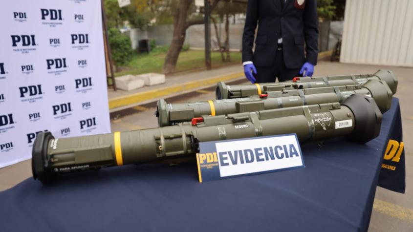 En total, la PDI decomisó tres lanzacohetes modelo AT4, dos escopetas, una pistola semiautomática glock con dos cargadores, y municiones calibre 16 y municiones, entre las que se cuentan cartuchos calibre 12, calibre 16 y calibre 38. Así como también, 8 cartuchos 556 de guerra y 24 cartuchos 762, calibre de guerra.