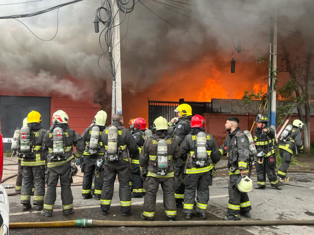 Se trata de un siniestro que se originó pasado el mediodía de este sábado, en la empresa ubicada en la caletera de Américo Vespucio con calle La Granja.